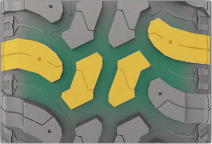 — специальный дизайн протектора для езды в жестких условиях бездорожья;
