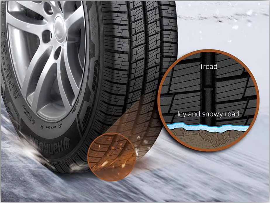 ВНИМАНИЕ! Способность шины HANKOOK RA30 Vantra ST AS2 не ударить «в грязь лицом» на зимних дорогах подкреплена маркировками «3PMSF» — символ снежинки на фоне трехглавой горной вершины и «M+S», что относит её к категории настоящих всесезонных покрышек для круглогодичной эксплуатации!