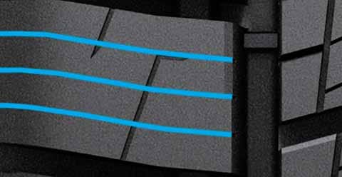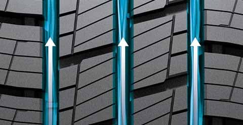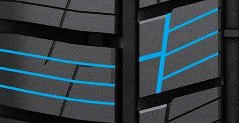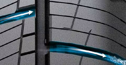 Открытая плечевая часть шины помогает быстро отводить воду, что приводит к улучшению характеристик на мокрой дороге и повышает устойчивость к аквапланированию.