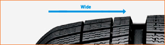 Деление боковых блоков полуканавками позволяет улучшить гибкость и оптимизировать пятно контакта при прохождении поворотов. Это также помогает улучшить управляемость на мокром и заснеженном дорожном покрытии.