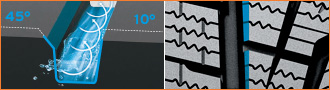 Боковые канавки в форме ледоруба улучшают сцепление на мокрой и заснеженной дороге. Превосходные характеристики тяги на снегу благодаря оптимизированным углам атаки боковой канавки.