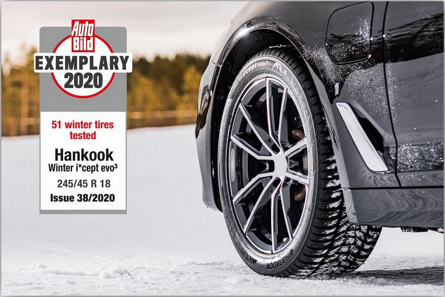 Об этом также свидетельствует последнее испытание зимних шин от ведущего автомобильного журнала Европы. В своем выпуске № 38 от 17 сентября 2020 года журнал Auto Bild протестировал в общей сложности 56 шин размером 245/45 R18 100V на BMW 5 серии. По итогам только шесть протекторов шин были безоговорочно рекомендованы и получили наивысшую оценку «образцово», в их число вошла шина Winter i*Cept evo³ от Hankook.