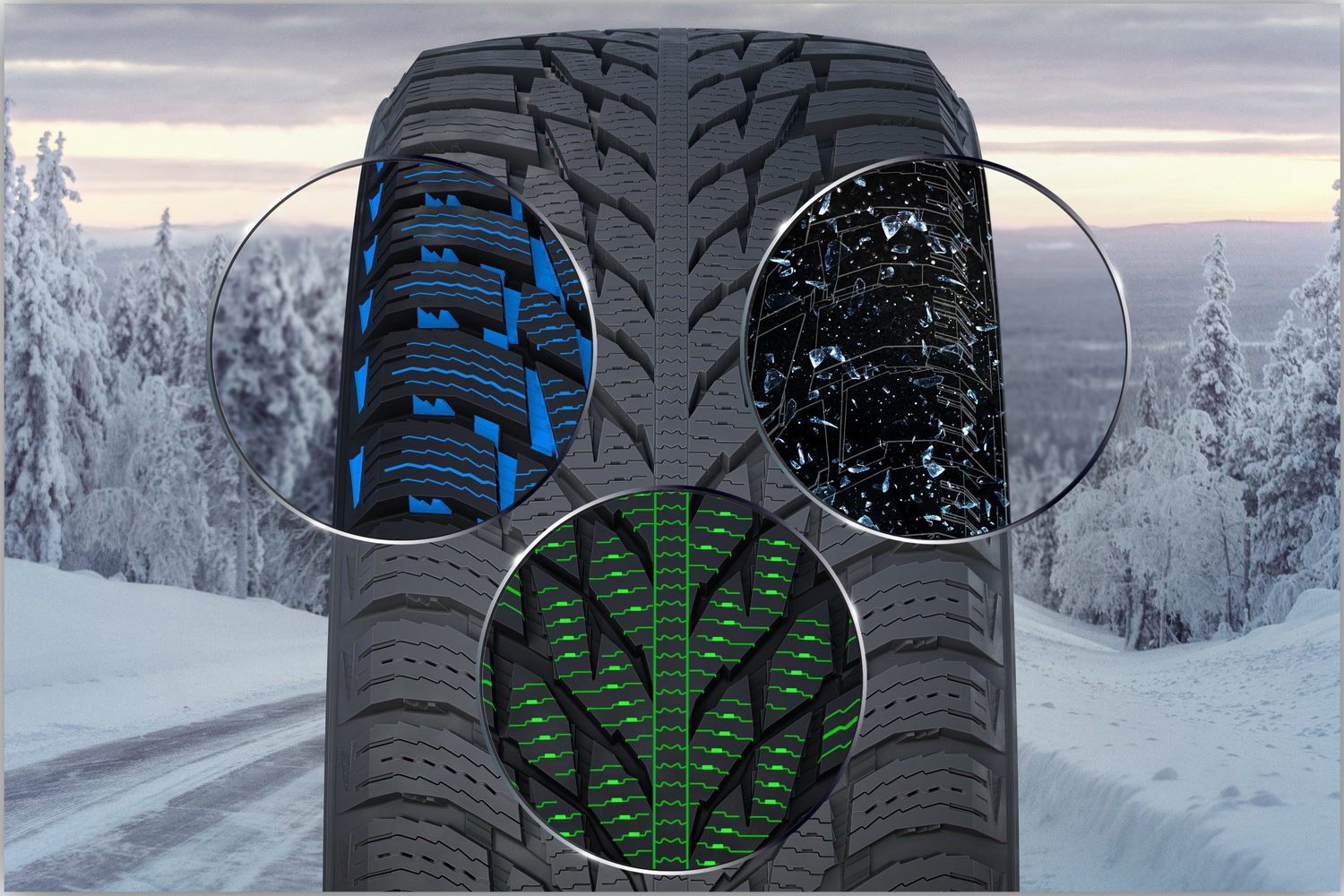 Испытания на экстремальное сцепление суровой зимой IKON Autograph Snow 3 SUV выдерживает с помощью частиц Cryo Crystal 3 в составе резиновой смеси нового поколения. Данная технология обеспечивает оптимальное продольное и поперечное сцепление. Микроскопические кристаллы работают как встроенные шипы, создавая острые твёрдые кромки сцепления внутри резины. По мере износа шины равномерно распределенные в резиновой смеси кристаллы постепенно выходят наружу, что обеспечивает надежное сцепление.