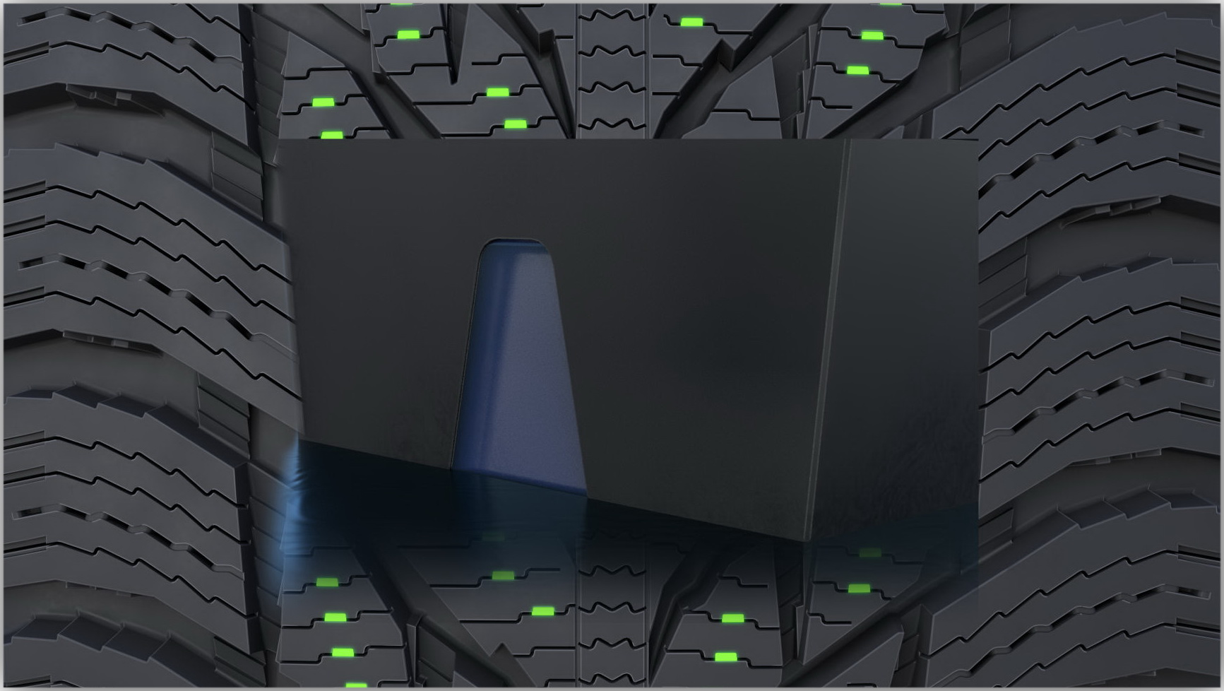 Прямые зазубренные плечевые зоны увеличивают длину кромки сцепления и обеспечивают надежное боковое сцепление, особенно в снежной колее.