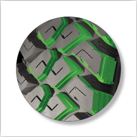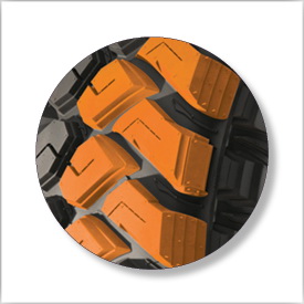 Специальный внедорожный резиновый компаунд с уникальными химическими наполнителями обеспечивает равномерное рассеивание и высвобождение тепла для придания шине высокой степени износостойкости.