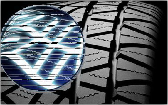 Ламели S-образной формы позволяют обеспечить дополнительное сцепление со скользким покрытием. Это достигается за счет образования ими многочисленных острых граней, которые проникая сквозь водяную пленку на поверхности дорожного полотна, эффективно цепляются за любую неровность. При этом S-образная форма позволяет обеспечить более надежную фиксацию стенок ламелей между собой, повышая тем самым конструктивную жесткость протекторного блока, что, в свою очередь, существенно улучшает управляемость на сухой дороге.