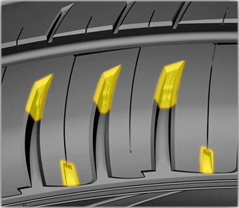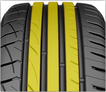 Центральное непрерывное ребро жесткости отвечает за управляемость и курсовую устойчивость на прямой, а два соседних широких продольных — обеспечивают максимальную эффективность передачи тяговых усилий при разгоне и торможении, а также дополнительно гарантируют хорошую курсовую устойчивость на высоких скоростях.Улучшенное маневрирование и равномерный износ