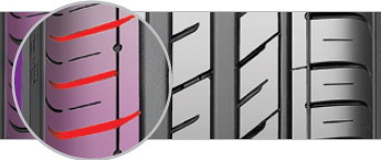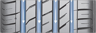 Асимметричный рисунок протектора и четыре продольные водоотводящие канавки с увеличенной площадью поперечного сечения обеспечивают оптимальную устойчивость на дороге и идеальный отвод воды наряду с наилучшей эффективностью торможения.