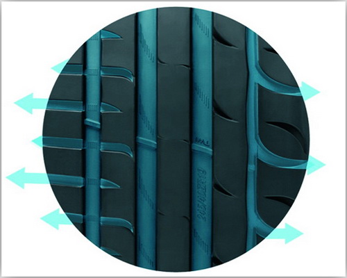 — продольные дренажные канавки с увеличенной площадью поперечного сечения эффективно снижают риск аквапланирования;
