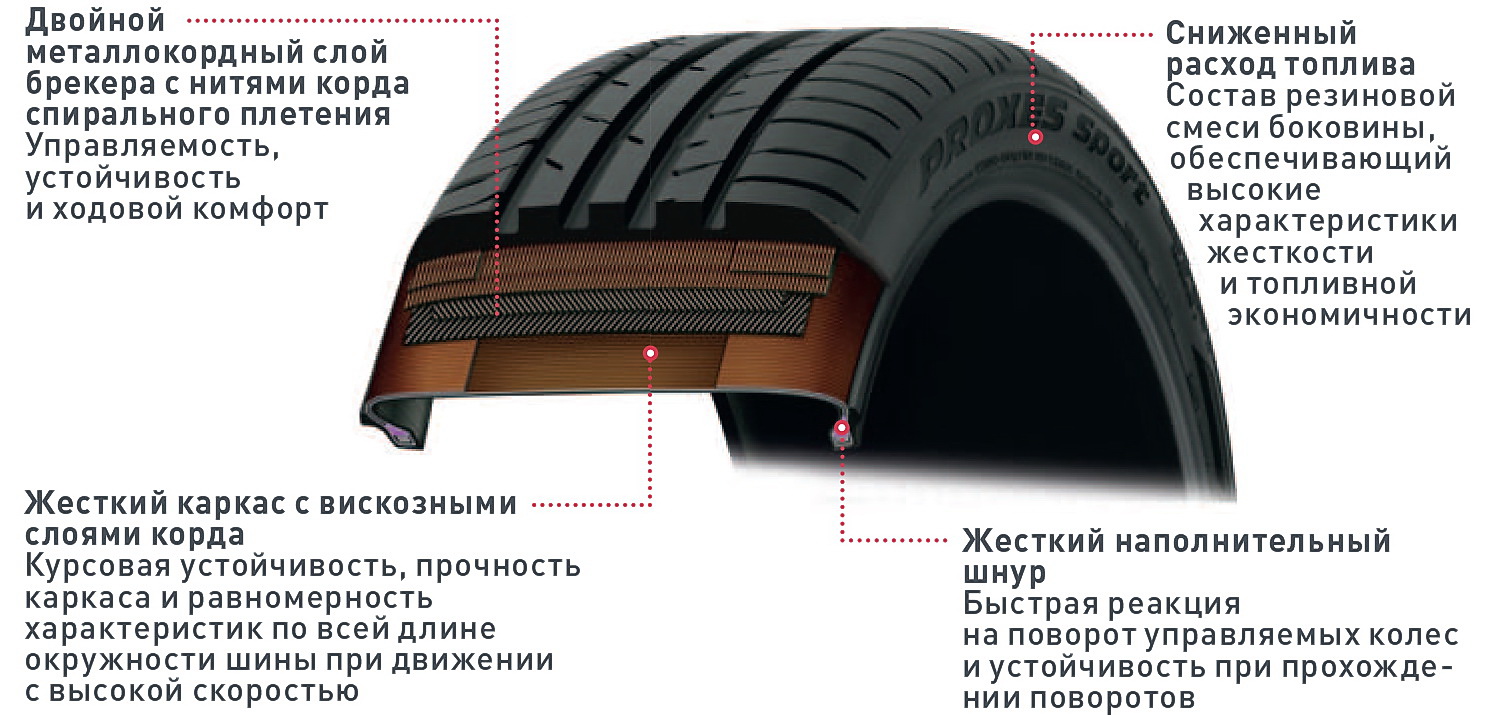 Конструкция летней шины TOYO Proxes Sport способствует курсовой устойчивости и высоким скоростным свойствам: шина имеет прочный вискозный каркас с высоким заворотом кромок, двойной стальной брекерный слой, более жесткий резиновый слой боковины и сверхпрочное бортовое кольцо.