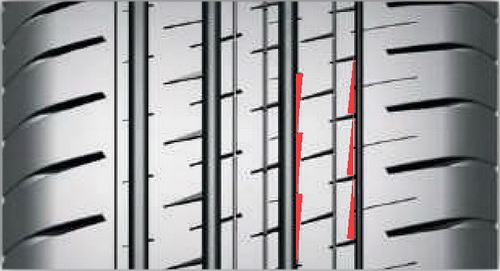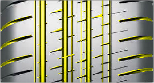 Продольные окружные ребра обеспечивают высокую курсовую устойчивость, отличную управляемость на сухой и мокрой дороге. Средние рёбра выполнены с разным рисунком канавок и прорезей, что обеспечивает надежную курсовую устойчивость автомобиля.
