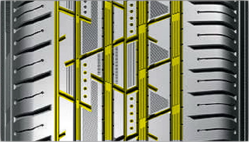Широкие массивные ребра повышают жесткость шины и уменьшают смещение шашек протектора при контакте с дорогой, обеспечивая идеально точное управление автомобилем.