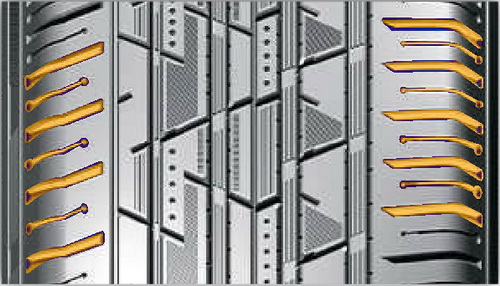Окружные канавки и наклонные прорези служат основным источником отвода воды из зоны контакта, сводя к минимуму риск аквапланирования на высоких скоростях, поддерживают курсовую устойчивость и точное управление автомобилем.