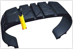 Четыре широкие продольные канавки и подходящие к ним под углом поперечные канавки служат для быстрого отвода воды из пятна контакта, что значительно увеличивает устойчивость шины к аквапланированию. Также такое строение протектора защищает шину от повреждения камнями.Высокая курсовая устойчивость