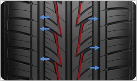— улучшенный отвод воды из пятна контакта повышает характеристики поведения автомобиля на мокрой дороге, обеспечивая лучшую управляемость автомобилем.