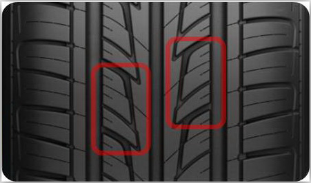Смещение симметрии блоков рисунка протектора препятствует образованию звуковой волны в канавках шины, что снижает шум и гул при движении.