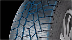 Большая плотность расположения ламелей и увеличенное количество кромок улучшают передачу усилия. Современная конструкция шины обеспечивает максимальную безопасность, существенно сокращая тормозной путь на льду.