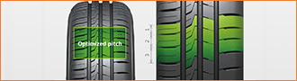 Инновационный рисунок протектора с оптимизированным шагом блоков и новая технология позиционирования канавок снижают шум при качении и повышают эксплуатационный комфорт.