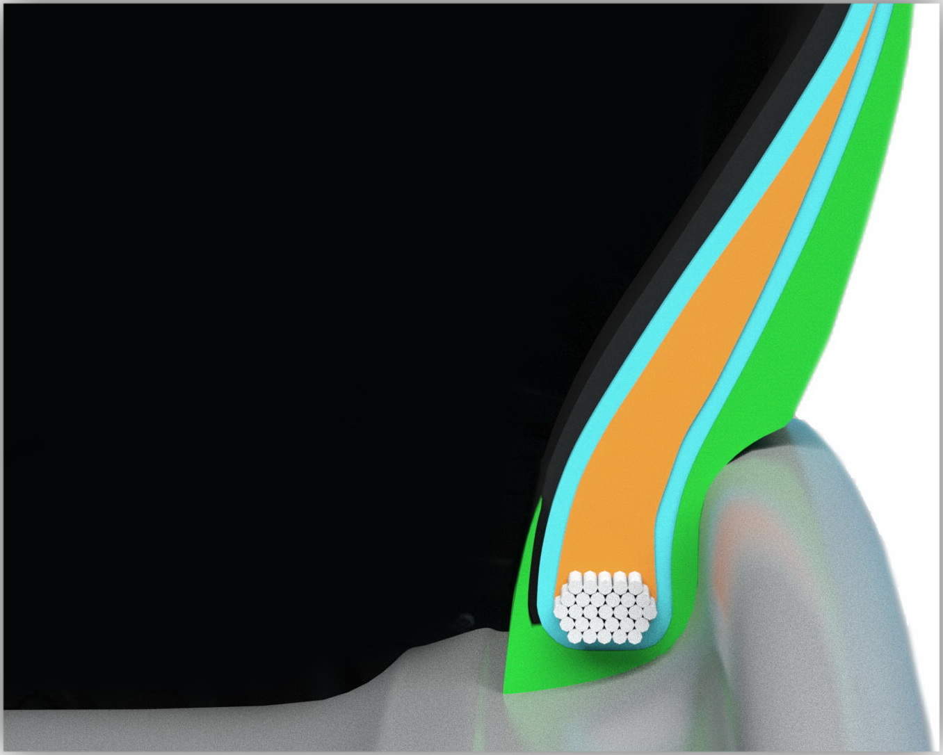 Волнообразная опора поддерживает центральную канавку шины и позволяет более надежно удерживать шашки протектора от деформаций. Опора улучшает боковую жесткость шины и благодаря этому, нагрузки равномерно распределяются по всему пятну контакта, шина более равномерно изнашивается, увеличивается ресурс и более эффективно осуществляется сцепление. Волнообразная опора также существенно снижает опасность аквапланирования на мокром покрытии при летнем дожде.