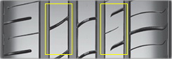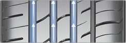 Три широкие дренажные канавки с внутренней стороны шины обеспечивают превосходный отвод воды из пятна контакта, что положительно влияет на устойчивость при вождении на мокрых дорогах.