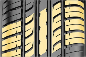 В зависимости от размера шины три или четыре различных канавки обеспечивают отличный отвод воды и значительно снижают риск аквапланирования.