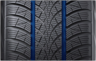 Модель TW401 WinterX оснащена направленным симметричным протектором. Его центральная часть представлена блоками клиновидной формы, которые сходятся к центру. Между ними располагаются дренажные каналы, образуя развитую сеть водоотведения, что обеспечивает моментальное осушение пятна контакта, способствуя сохранению сцепления и улучшению тормозных показателей.